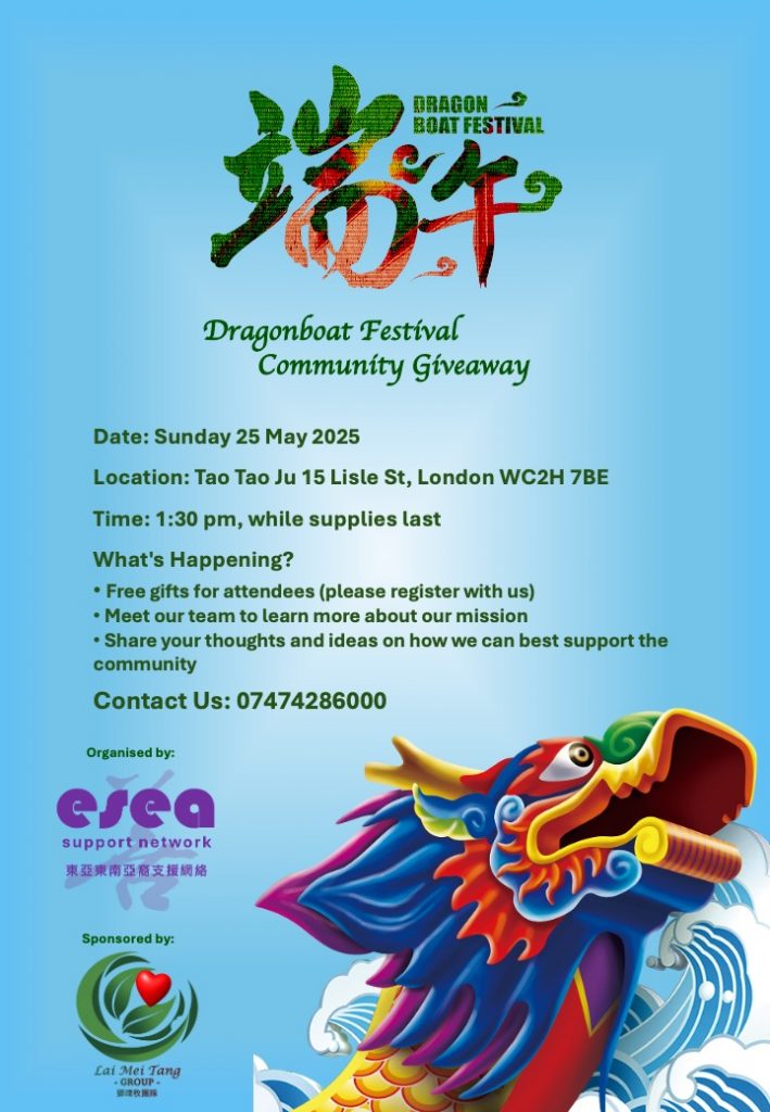 [Westminster, London] On Sunday, 25 May 2025, London’s Chinatown was filled with joy and festive spirit as the Dragon Boat Festival Community Giveaway, organised by the East and Southeast Asian (ESEA) Support Network, was successfully held outside Tao Tao Ju. The event attracted numerous residents, families, and tourists, celebrating tradition while strengthening community bonds.